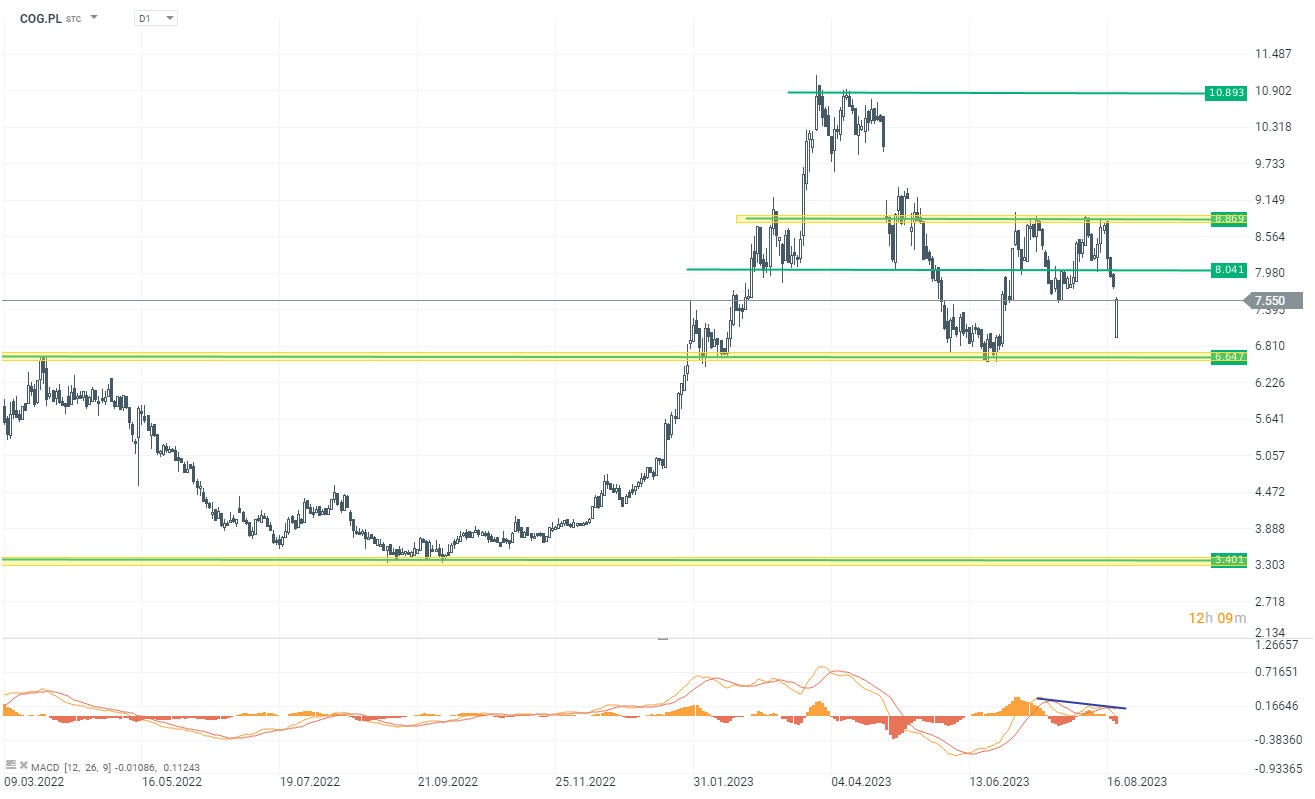 Notowania akcji Cognor SA na interwale dziennym, źródło xStation 5