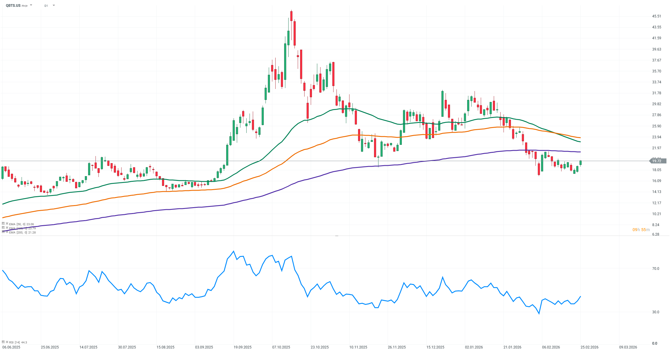 Mimo pozytywnych trendów w zakresie przychodów i nowych zamówień spółka nadal notuje znaczne straty operacyjne, wynikające z intensywnych inwestycji w badania, rozwój i marketing, które mają na celu przyspieszenie komercjalizacji technologii. Rynek technologii kwantowych pozostaje we wczesnej fazie rozwoju, a przewaga konkurencyjna nie jest jeszcze w pełni udokumentowana w realnych przychodach z działalności. Wycena akcji D‑Wave opiera się w dużej mierze na oczekiwaniach dotyczących przyszłego sukcesu technologicznego, co powoduje, że kurs jest podatny na dużą zmienność i wrażliwy na krótkoterminowe odczyty wyników.