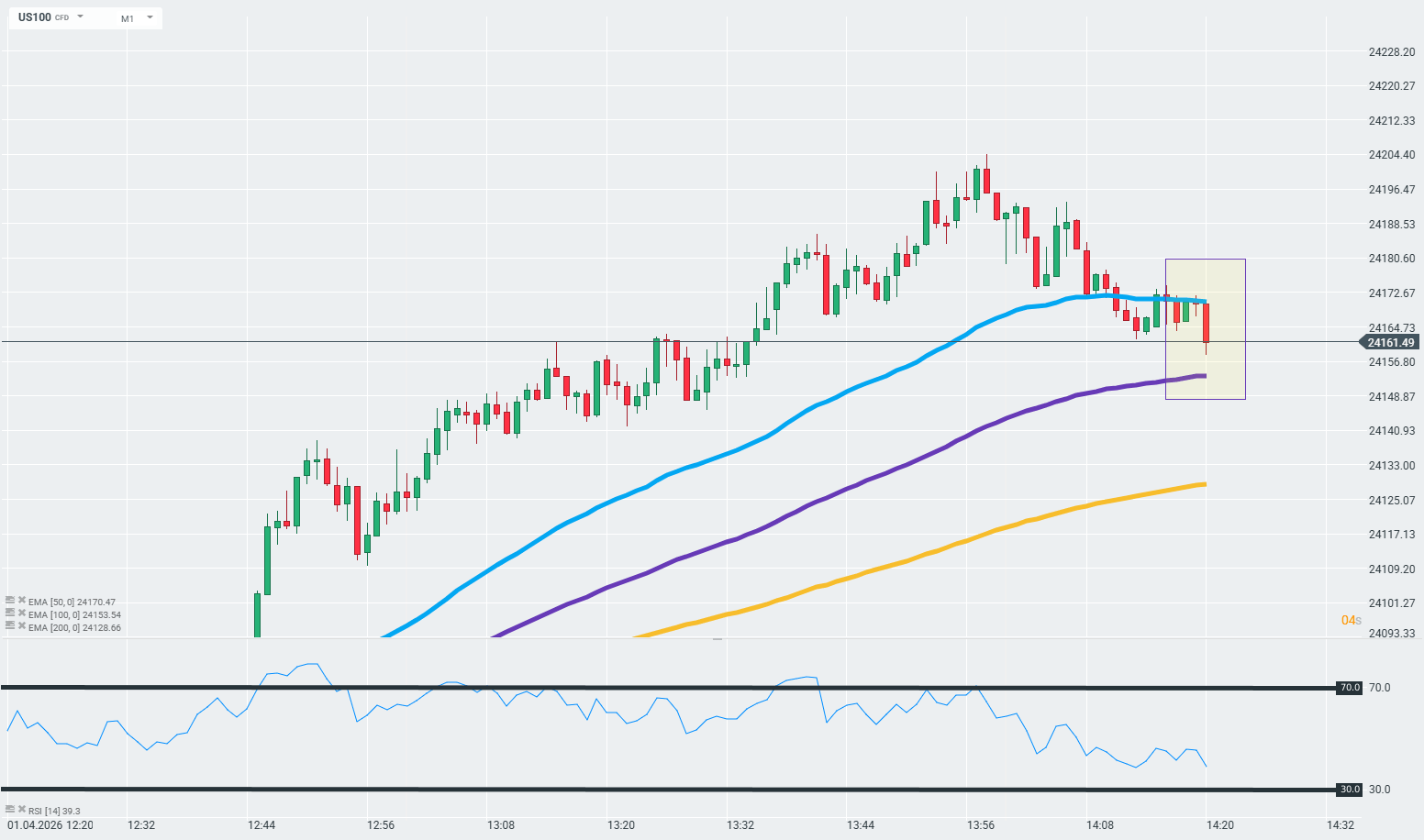 Rynki nie reagują przesadnie na odczyt raportu ADP z USA. US100 lekko traci na kilka minut po odczycie.