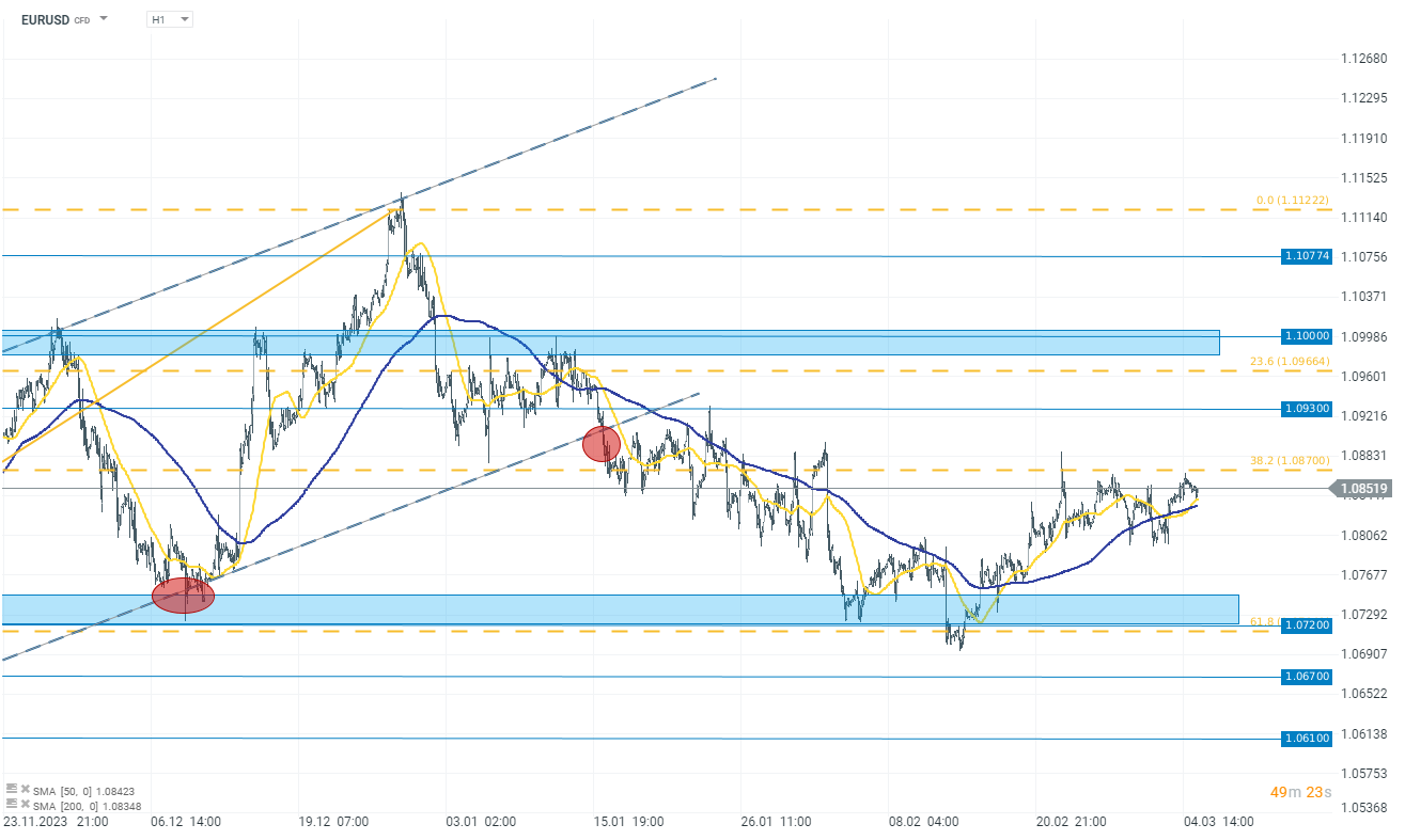 Wskaźnik HCOB Eurozone Composite PMI wskazuje, że gospodarka strefy euro była bliska stabilizacji w lutym, z niewielkim wzrostem w sektorze usług równoważącym ciągły spadek w produkcji. Wskaźnik produkcji PMI osiągnął 8-miesięczny szczyt na poziomie 49,2, podczas gdy wskaźnik aktywności gospodarczej Services PMI osiągnął 7-miesięczny szczyt na poziomie 50,2. Pomimo dziewięciomiesięcznego spadku całkowitej produkcji, spadek w lutym był najmniejszy od połowy ubiegłego roku. Spowolnienie popytu ustępuje, co zwiększa oczekiwania dotyczące przyszłego wzrostu. Warto zauważyć, że Włochy i Hiszpania odnotowały solidne raporty PMI, podczas gdy dane PMI z Niemiec i Francji wskazują na dalszy spadek.