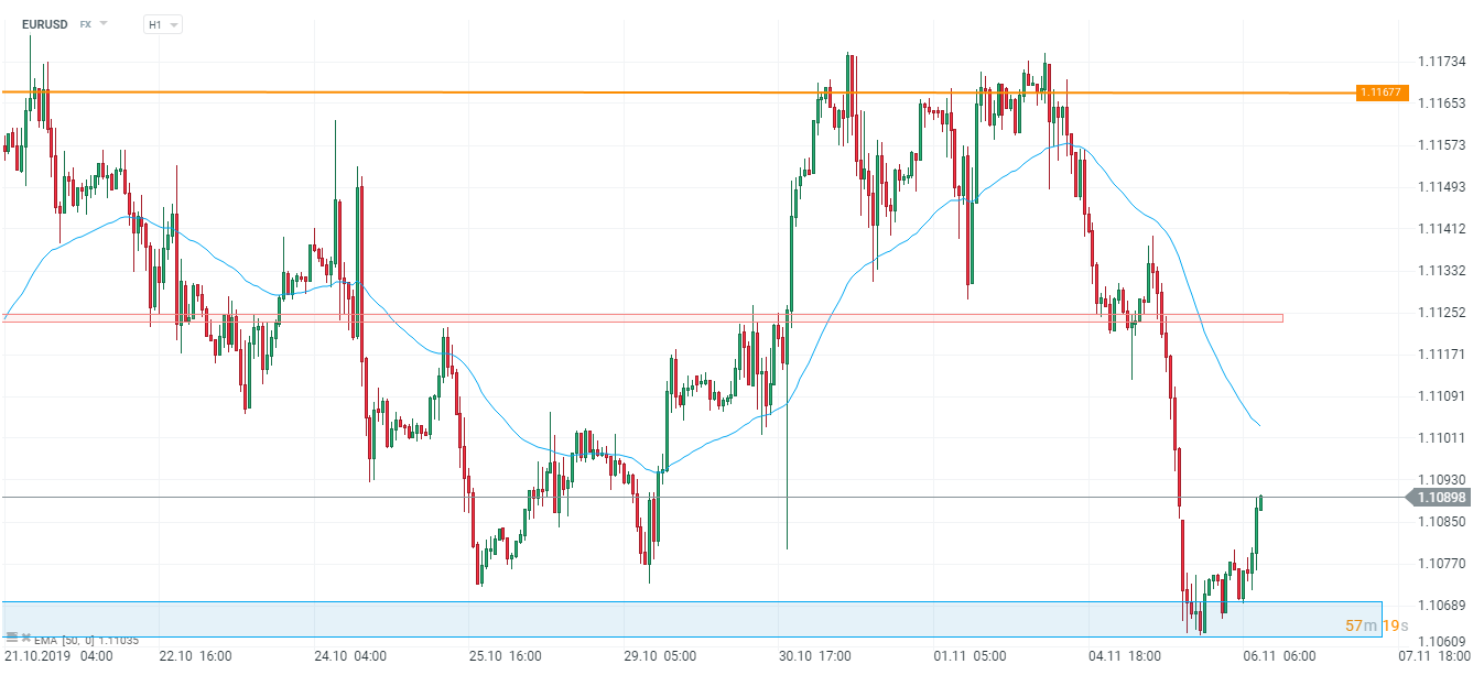 Kurs EURUSD odbił się od kluczowej strefy wsparcia, otwierając drogę do poziomu 1,1125 gdzie prawdopodobnie napotka silny opór cenowy. W reakcji na powyższe dane rynek zareagował delikatnym wzrostem o 4,5 pipsa. Źródło: xStation5