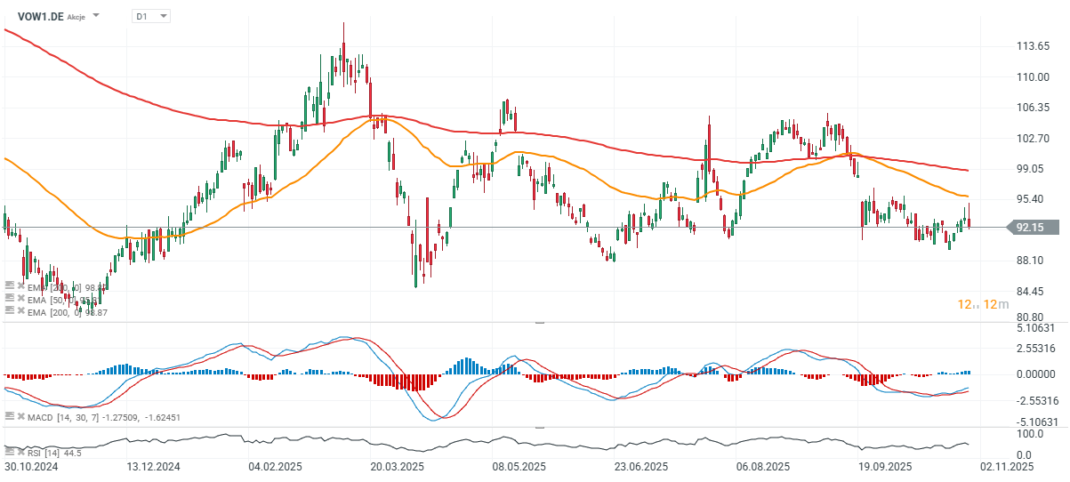 W trzecim kwartale 2025 roku koncern zanotował stratę operacyjną w wysokości 1,3 mld euro (ok. 1,5 mld USD). Na wyniki mocno wpłynęły odpisy i korekty wartości aktywów o łącznej wartości 5,1 mld euro, które były konsekwencją zbyt optymistycznej strategii rozwoju segmentu elektromobilności w Porsche AG. Dodatkowym obciążeniem okazały się amerykańskie cła importowe, uderzające w najbardziej rentowne marki grupy.