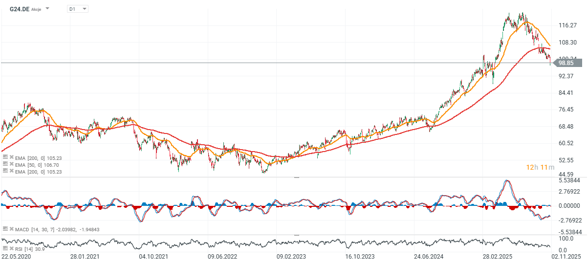 Spółka zawęziła obecne wytyczne dotyczące wzrostu skorygowanej marży operacyjnej EBITDA do górnego przedziału wcześniejszego zakresu (do +70 punktów bazowych). Głównym celem Scout24 pozostaje dalszy wzrost operacyjnego EBITDA oraz związanej z nim marży. Akcje spółki nieznacznie dzisiaj zyskują.