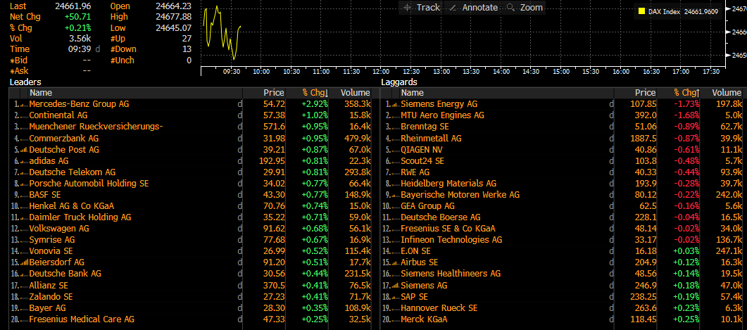 - Siemens i MTU Aero najsłabszymi walorami w DAX; wzrostom przewodzą Mercedes Benz i Continental