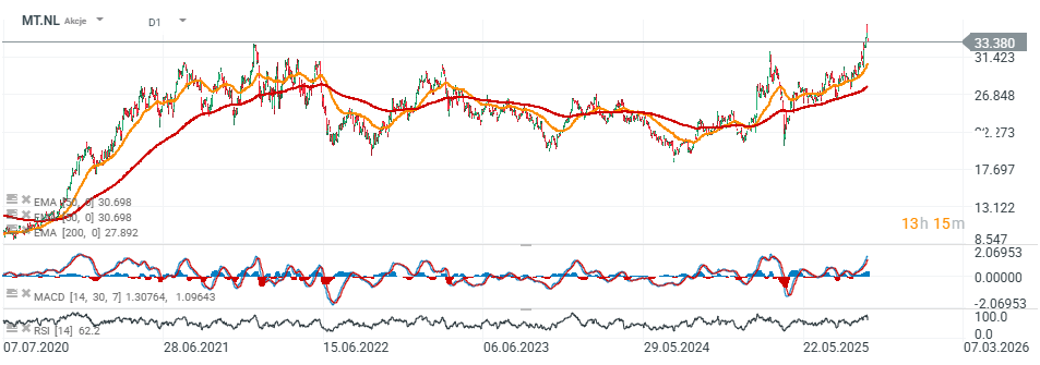 Goldman Sachs obniża rekomendację ArcelorMittal (MT) do „Neutral” z „Buy”, jednocześnie podnosząc cenę docelową do 30 EUR (z 29 EUR). W efekcie akcje spółki spadają dziś ponad 2%, kontynuując cofnięcie z wieloletnich szczytów.