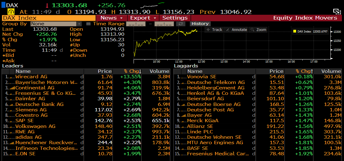 Indeks DAX o godz. 11:49. Źródło: Bloomberg