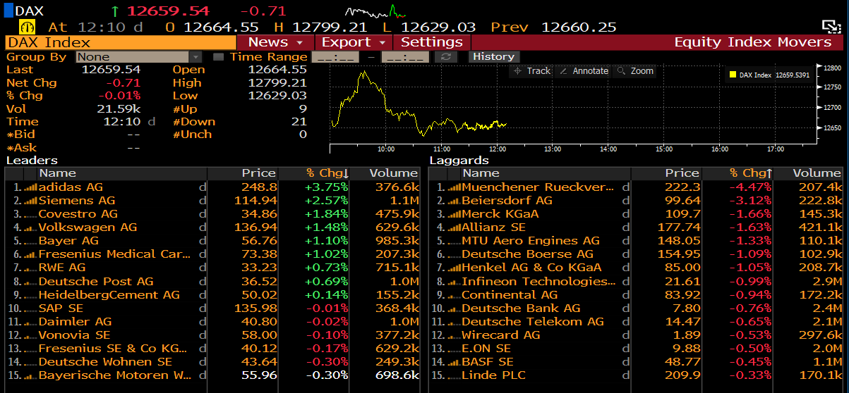 Indeks DAX o godz. 12:10. Źródło: Bloomberg