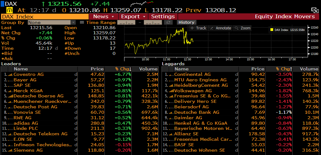 Spółki z indeksu DAX o godz. 12:17. Źródło: Bloomberg