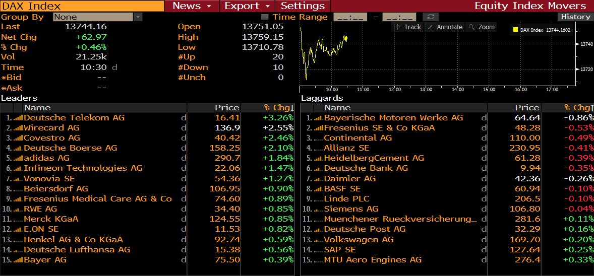 Spółki z indeksu DAX o poranku. Źródło: Bloomberg