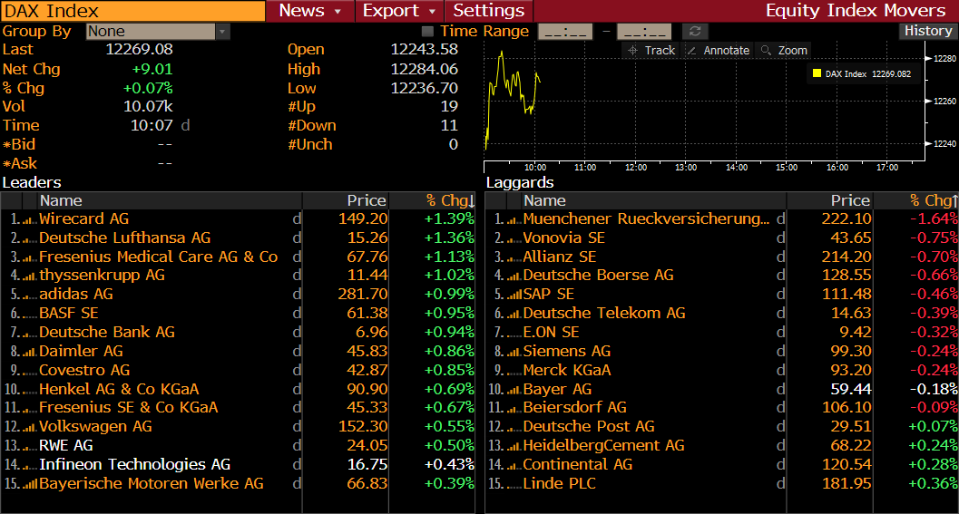 Niemiecki indeks notuje łagodny początek nowego tygodnia handlowego. Źródło: Bloomberg