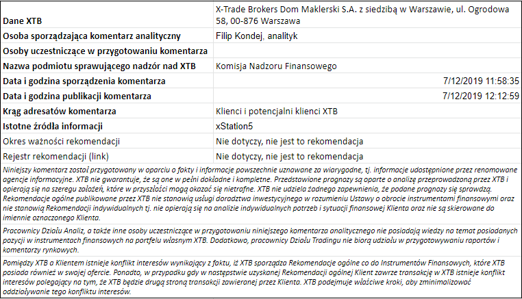 Ta publikacja handlowa jest informacyjna i edukacyjna. Nie jest rekomendacją inwestycyjną ani informacją rekomendującą lub sugerującą strategię inwestycyjną. W materiale nie sugerujemy żadnej strategii inwestycyjnej ani nie świadczymy usługi doradztwa inwestycyjnego. Materiał nie uwzględnia indywidualnej sytuacji finansowej, potrzeb i celów inwestycyjnych klienta. Nie jest też ofertą sprzedaży ani subskrypcji. Nie jest zaproszeniem do nabycia, reklamą ani promocją jakichkolwiek instrumentów finansowych. Publikację handlową przygotowaliśmy starannie i obiektywnie. Przedstawiamy stan faktyczny znany autorom w chwili tworzenia dokumentu. Nie umieszczamy w nim żadnych elementów oceniających. Informacje i badania oparte na historycznych danych lub wynikach oraz prognozy nie stanowią pewnego wskaźnika na przyszłość. Nie odpowiadamy za Twoje działania lub zaniechania, zwłaszcza za to, że zdecydujesz się nabyć lub zbyć instrumenty finansowe na podstawie informacji z tej publikacji handlowej. Nie odpowiadamy też za szkody, które mogą wynikać z bezpośredniego czy też pośredniego wykorzystania tych informacji. Inwestowanie jest ryzykowne. Inwestuj odpowiedzialnie.