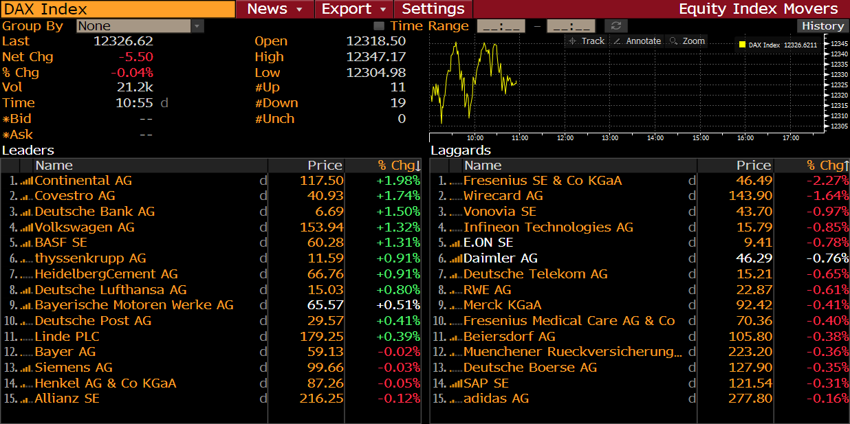 Spółki DAX o 10:55 rano. Źródło: Bloomberg