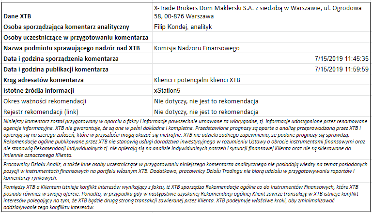 Ta publikacja handlowa jest informacyjna i edukacyjna. Nie jest rekomendacją inwestycyjną ani informacją rekomendującą lub sugerującą strategię inwestycyjną. W materiale nie sugerujemy żadnej strategii inwestycyjnej ani nie świadczymy usługi doradztwa inwestycyjnego. Materiał nie uwzględnia indywidualnej sytuacji finansowej, potrzeb i celów inwestycyjnych klienta. Nie jest też ofertą sprzedaży ani subskrypcji. Nie jest zaproszeniem do nabycia, reklamą ani promocją jakichkolwiek instrumentów finansowych. Publikację handlową przygotowaliśmy starannie i obiektywnie. Przedstawiamy stan faktyczny znany autorom w chwili tworzenia dokumentu. Nie umieszczamy w nim żadnych elementów oceniających. Informacje i badania oparte na historycznych danych lub wynikach oraz prognozy nie stanowią pewnego wskaźnika na przyszłość. Nie odpowiadamy za Twoje działania lub zaniechania, zwłaszcza za to, że zdecydujesz się nabyć lub zbyć instrumenty finansowe na podstawie informacji z tej publikacji handlowej. Nie odpowiadamy też za szkody, które mogą wynikać z bezpośredniego czy też pośredniego wykorzystania tych informacji. Inwestowanie jest ryzykowne. Inwestuj odpowiedzialnie.