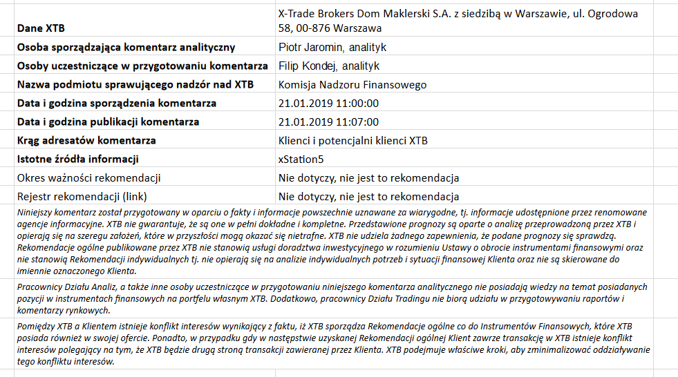 Ta publikacja handlowa jest informacyjna i edukacyjna. Nie jest rekomendacją inwestycyjną ani informacją rekomendującą lub sugerującą strategię inwestycyjną. W materiale nie sugerujemy żadnej strategii inwestycyjnej ani nie świadczymy usługi doradztwa inwestycyjnego. Materiał nie uwzględnia indywidualnej sytuacji finansowej, potrzeb i celów inwestycyjnych klienta. Nie jest też ofertą sprzedaży ani subskrypcji. Nie jest zaproszeniem do nabycia, reklamą ani promocją jakichkolwiek instrumentów finansowych. Publikację handlową przygotowaliśmy starannie i obiektywnie. Przedstawiamy stan faktyczny znany autorom w chwili tworzenia dokumentu. Nie umieszczamy w nim żadnych elementów oceniających. Informacje i badania oparte na historycznych danych lub wynikach oraz prognozy nie stanowią pewnego wskaźnika na przyszłość. Nie odpowiadamy za Twoje działania lub zaniechania, zwłaszcza za to, że zdecydujesz się nabyć lub zbyć instrumenty finansowe na podstawie informacji z tej publikacji handlowej. Nie odpowiadamy też za szkody, które mogą wynikać z bezpośredniego czy też pośredniego wykorzystania tych informacji. Inwestowanie jest ryzykowne. Inwestuj odpowiedzialnie.