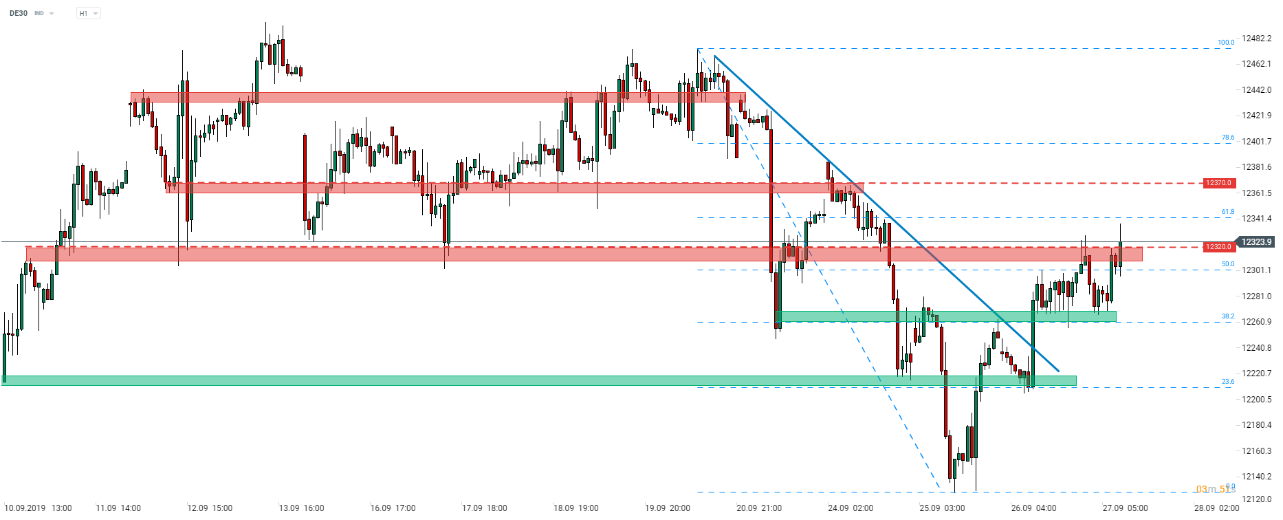 - DE30 testuje krótkoterminową strefę oporu poniżej poziomu 12320 punktów