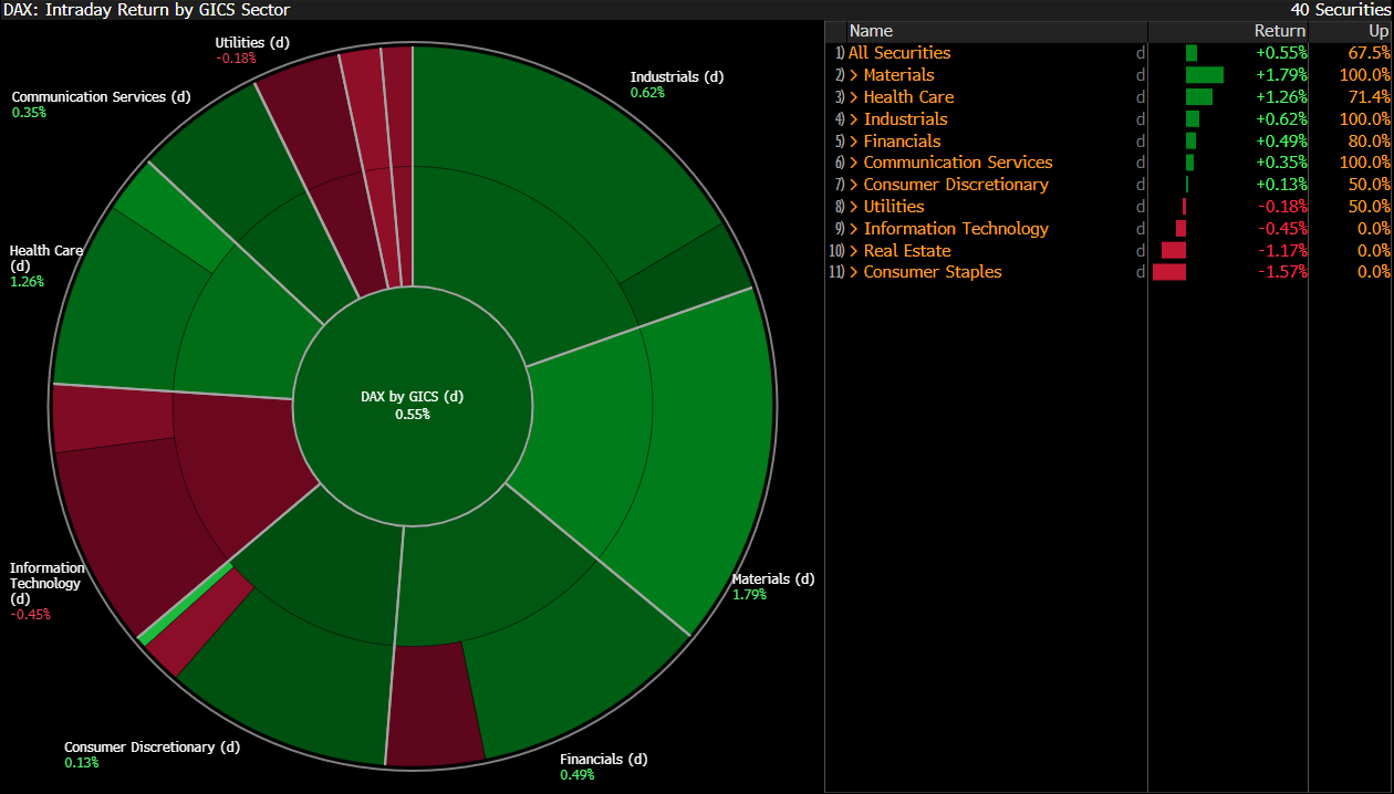 Najaktywniejsze walory notowane na indeksie DAX (DE30). Źródło: Bloomberg