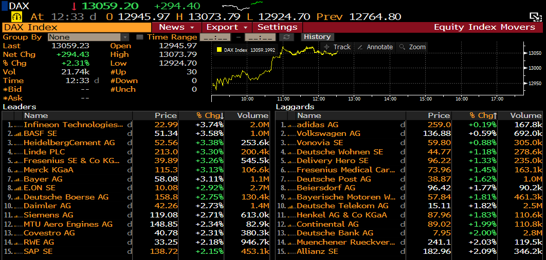 Spółki z indeksu DAX. Źródło: Bloomberg