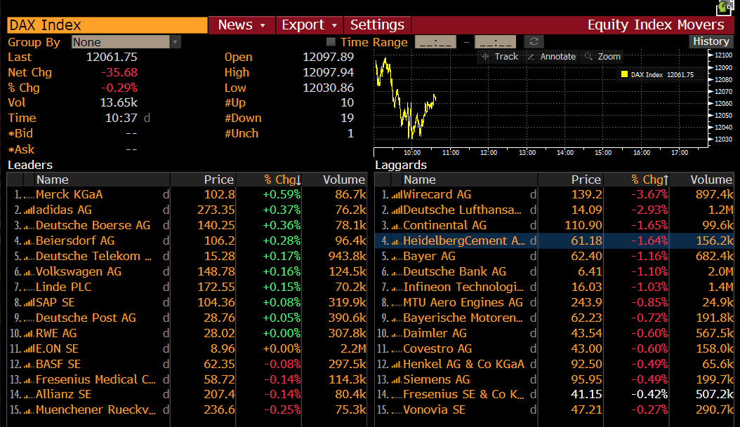 - Indeks DE30 odnotowuje spadki , po nieudanej próbie sforsowania 50% zniesienia Fibo Wirecard