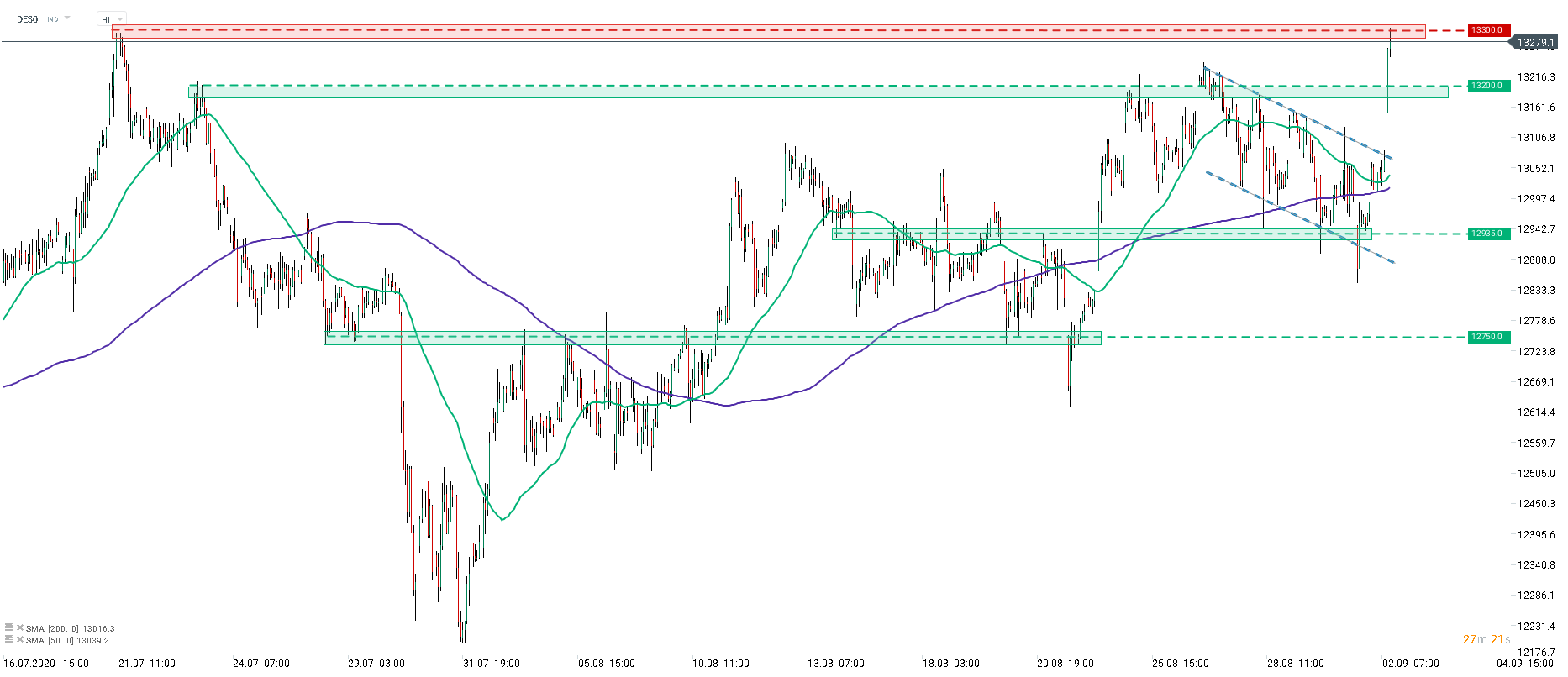 - DE30 testuje post-pandemiczny szczyt na poziomie 13300 punktów