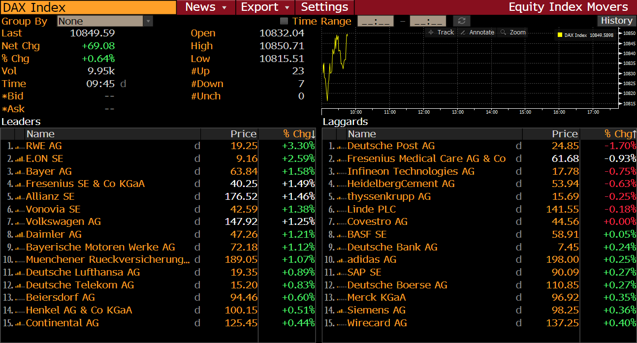 Allianz (ALV.DE) jest jedną z najlepszych spółek dzisiejszego dnia. Spółka rośnie dzisiaj prawdopodobnie ze względu na lepszą rekomendację ze strony banku BofAML. Bank wydał obecnie rekomendację „kupuj” (wcześniej „trzymaj”). Cena docelowa została ustalona na poziom 210 EUR za akcję.