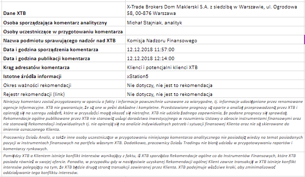 Ta publikacja handlowa jest informacyjna i edukacyjna. Nie jest rekomendacją inwestycyjną ani informacją rekomendującą lub sugerującą strategię inwestycyjną. W materiale nie sugerujemy żadnej strategii inwestycyjnej ani nie świadczymy usługi doradztwa inwestycyjnego. Materiał nie uwzględnia indywidualnej sytuacji finansowej, potrzeb i celów inwestycyjnych klienta. Nie jest też ofertą sprzedaży ani subskrypcji. Nie jest zaproszeniem do nabycia, reklamą ani promocją jakichkolwiek instrumentów finansowych. Publikację handlową przygotowaliśmy starannie i obiektywnie. Przedstawiamy stan faktyczny znany autorom w chwili tworzenia dokumentu. Nie umieszczamy w nim żadnych elementów oceniających. Informacje i badania oparte na historycznych danych lub wynikach oraz prognozy nie stanowią pewnego wskaźnika na przyszłość. Nie odpowiadamy za Twoje działania lub zaniechania, zwłaszcza za to, że zdecydujesz się nabyć lub zbyć instrumenty finansowe na podstawie informacji z tej publikacji handlowej. Nie odpowiadamy też za szkody, które mogą wynikać z bezpośredniego czy też pośredniego wykorzystania tych informacji. Inwestowanie jest ryzykowne. Inwestuj odpowiedzialnie.