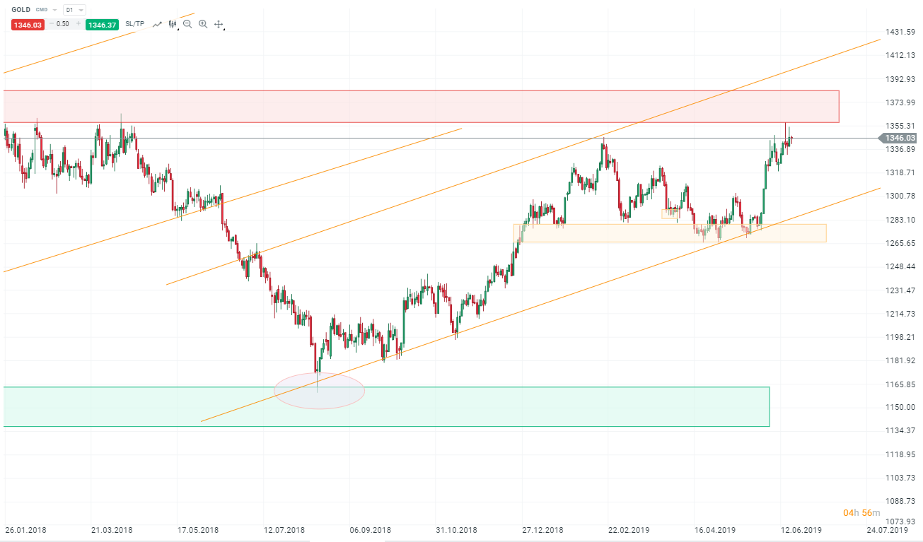 Rynek z optymizmem czeka na decyzję Fed. Ceny złota skorygowały wcześniejsze spadki, znajdują się blisko strefy oporu. Źródło: xStation5