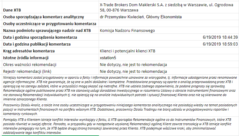 Jeśli wymowa komunikatu nie będzie jednoznaczna, rynek czekać będzie na konferencję prezesa Powella. W maju utrzymywał on, że gospodarka nie potrzebuje obniżek stóp. Rynki będą chciały zobaczyć, że ugiął się pod presją.