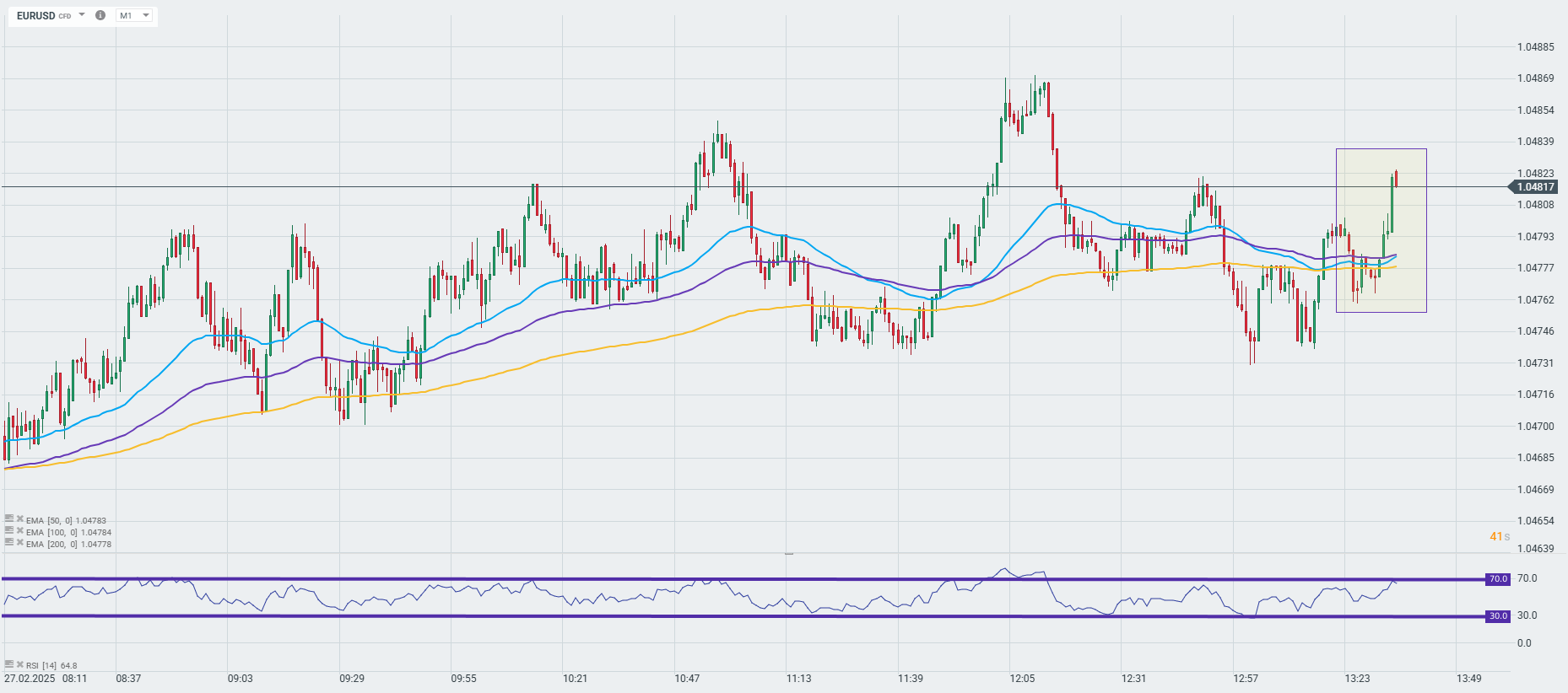 Euro nieznacznie zyskuje do dolara amerykańskie po odczycie Minutes. Źródło: xStation