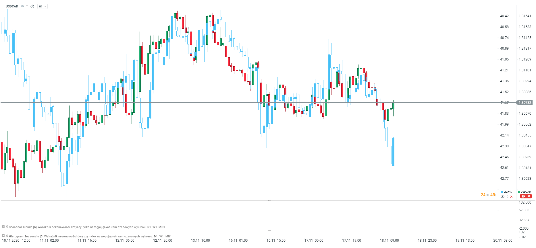 USDCAD odbija, choć jest to zapewne efekt słabszej ropy w ostatnich minutach. Źródło: xStation5