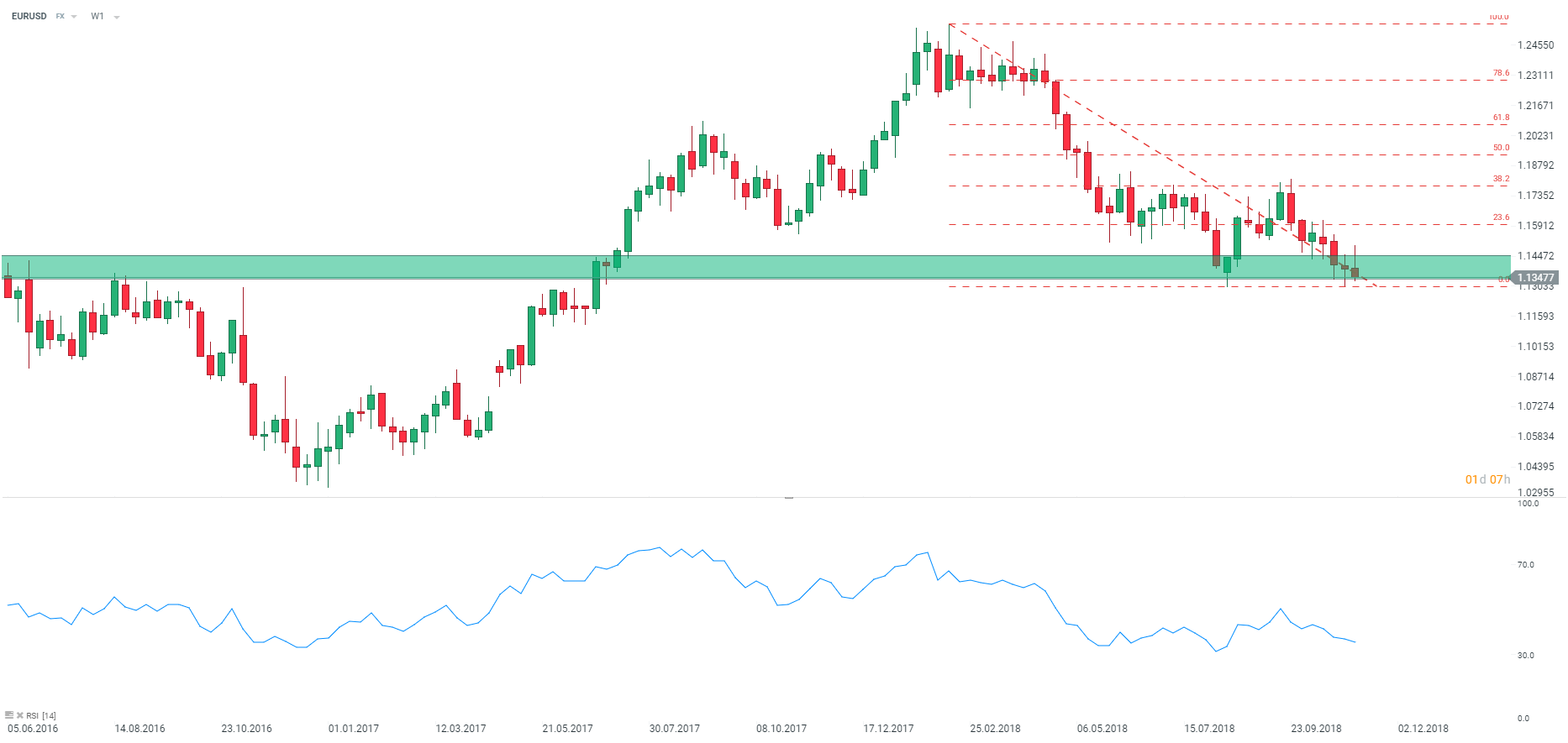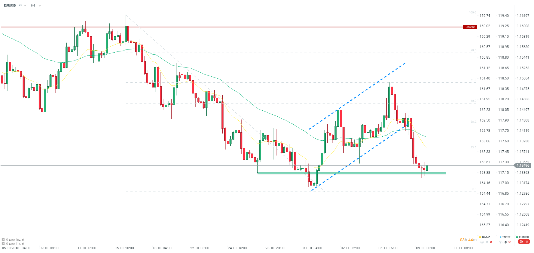 EURUSD znajduje wsparcie w okolicach poziomu 1,1340. Źródło: xStation5