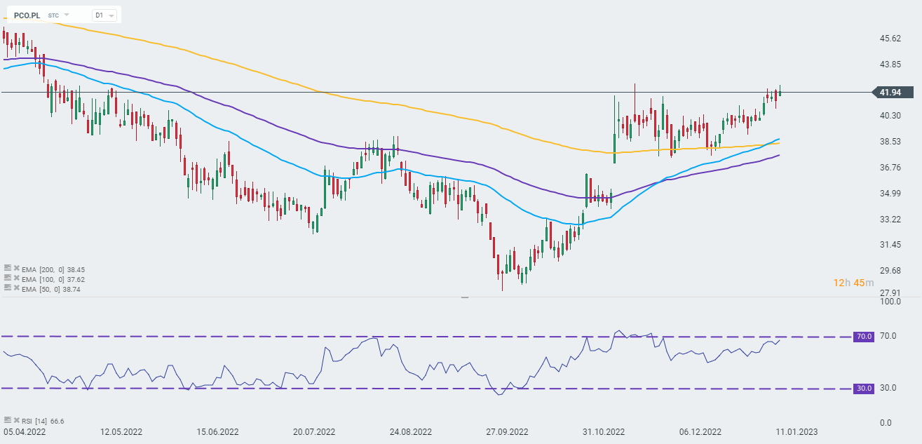 Wykres cen akcji spółki Pepco (PCO.PL), interwał D1. Źródło: xStation 5
