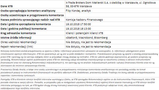 Ta publikacja handlowa jest informacyjna i edukacyjna. Nie jest rekomendacją inwestycyjną ani informacją rekomendującą lub sugerującą strategię inwestycyjną. W materiale nie sugerujemy żadnej strategii inwestycyjnej ani nie świadczymy usługi doradztwa inwestycyjnego. Materiał nie uwzględnia indywidualnej sytuacji finansowej, potrzeb i celów inwestycyjnych klienta. Nie jest też ofertą sprzedaży ani subskrypcji. Nie jest zaproszeniem do nabycia, reklamą ani promocją jakichkolwiek instrumentów finansowych. Publikację handlową przygotowaliśmy starannie i obiektywnie. Przedstawiamy stan faktyczny znany autorom w chwili tworzenia dokumentu. Nie umieszczamy w nim żadnych elementów oceniających. Informacje i badania oparte na historycznych danych lub wynikach oraz prognozy nie stanowią pewnego wskaźnika na przyszłość. Nie odpowiadamy za Twoje działania lub zaniechania, zwłaszcza za to, że zdecydujesz się nabyć lub zbyć instrumenty finansowe na podstawie informacji z tej publikacji handlowej. Nie odpowiadamy też za szkody, które mogą wynikać z bezpośredniego czy też pośredniego wykorzystania tych informacji. Inwestowanie jest ryzykowne. Inwestuj odpowiedzialnie.