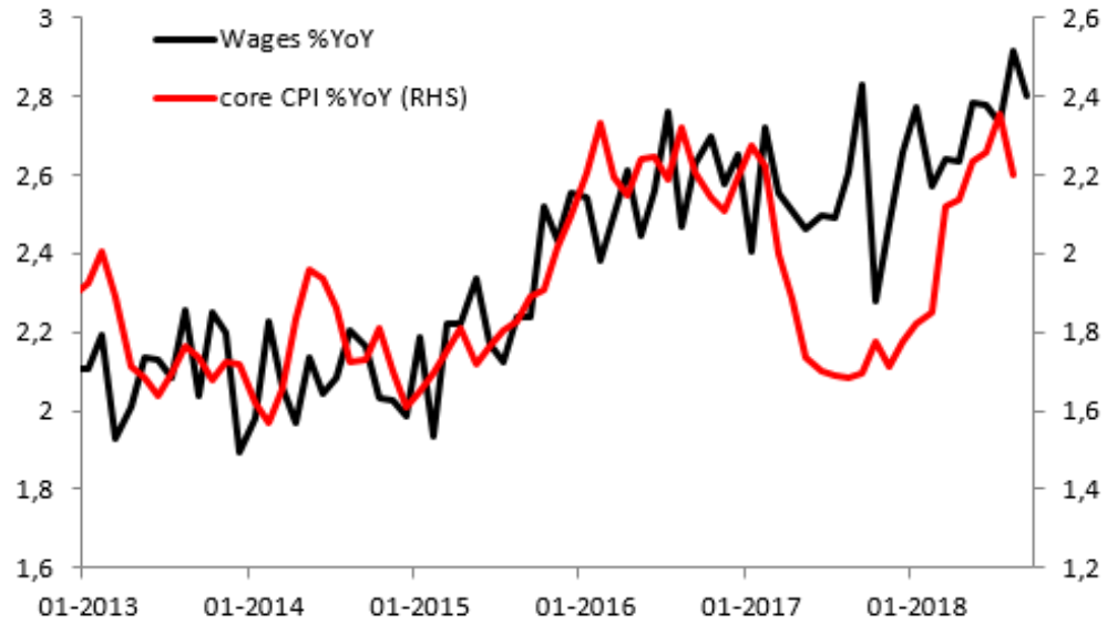 Wzrost płac zgodnie z prognozami na poziomie 2,8% r/r