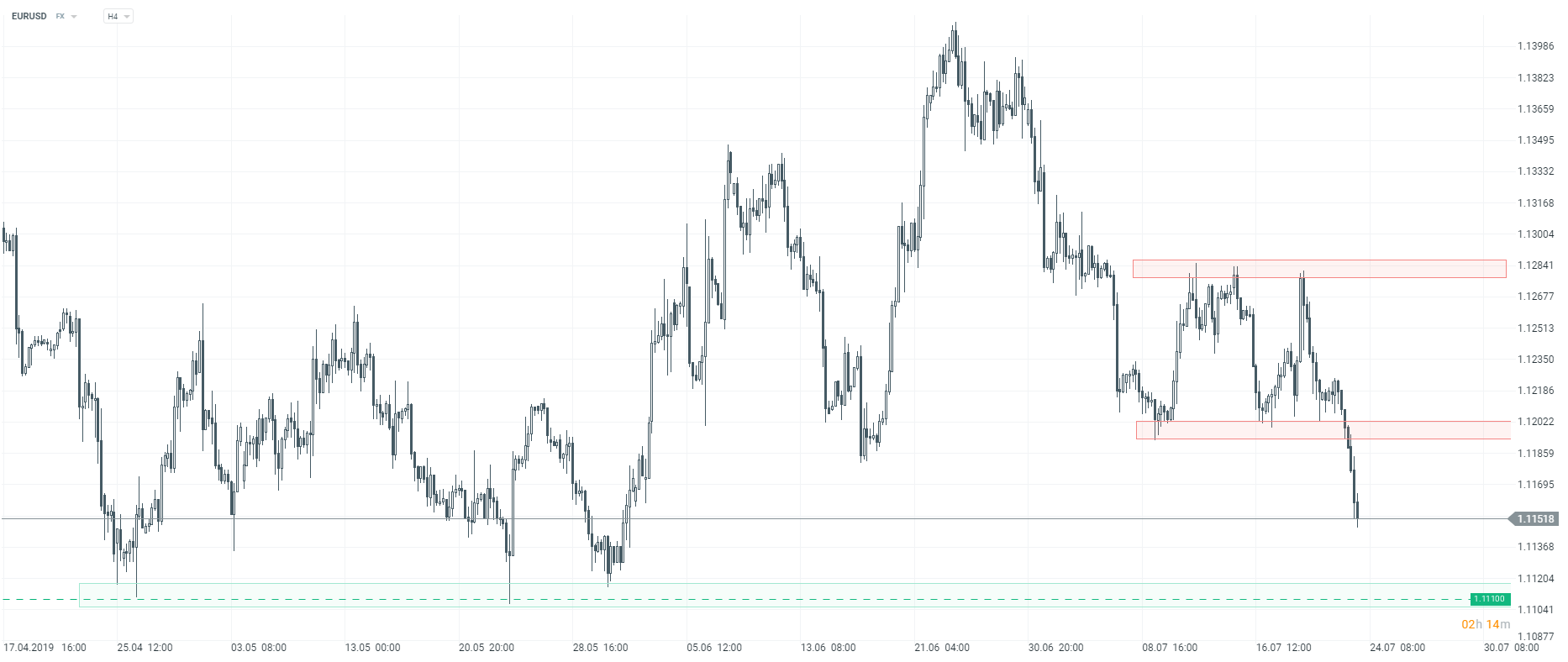 Kurs EURUSD kontynuuje spadki, droga do ostatnich minimów jest otwarta.Źródło: xStation5