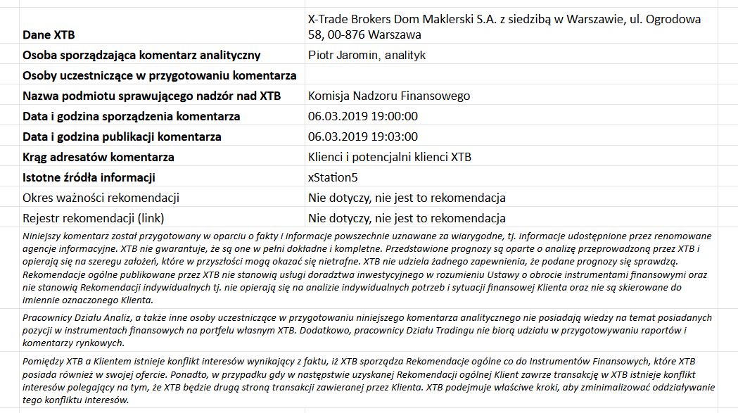 Ta publikacja handlowa jest informacyjna i edukacyjna. Nie jest rekomendacją inwestycyjną ani informacją rekomendującą lub sugerującą strategię inwestycyjną. W materiale nie sugerujemy żadnej strategii inwestycyjnej ani nie świadczymy usługi doradztwa inwestycyjnego. Materiał nie uwzględnia indywidualnej sytuacji finansowej, potrzeb i celów inwestycyjnych klienta. Nie jest też ofertą sprzedaży ani subskrypcji. Nie jest zaproszeniem do nabycia, reklamą ani promocją jakichkolwiek instrumentów finansowych. Publikację handlową przygotowaliśmy starannie i obiektywnie. Przedstawiamy stan faktyczny znany autorom w chwili tworzenia dokumentu. Nie umieszczamy w nim żadnych elementów oceniających. Informacje i badania oparte na historycznych danych lub wynikach oraz prognozy nie stanowią pewnego wskaźnika na przyszłość. Nie odpowiadamy za Twoje działania lub zaniechania, zwłaszcza za to, że zdecydujesz się nabyć lub zbyć instrumenty finansowe na podstawie informacji z tej publikacji handlowej. Nie odpowiadamy też za szkody, które mogą wynikać z bezpośredniego czy też pośredniego wykorzystania tych informacji. Inwestowanie jest ryzykowne. Inwestuj odpowiedzialnie.
