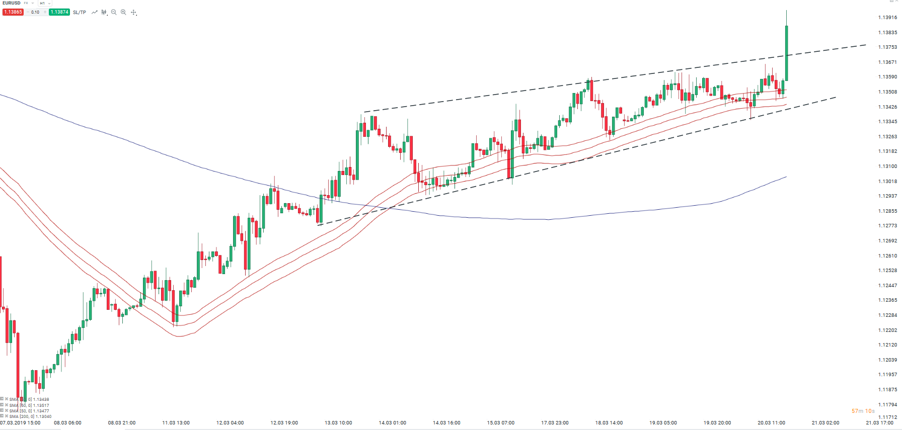 EURUSD rośnie po publikacji komunikatu. Źródło: xStation.