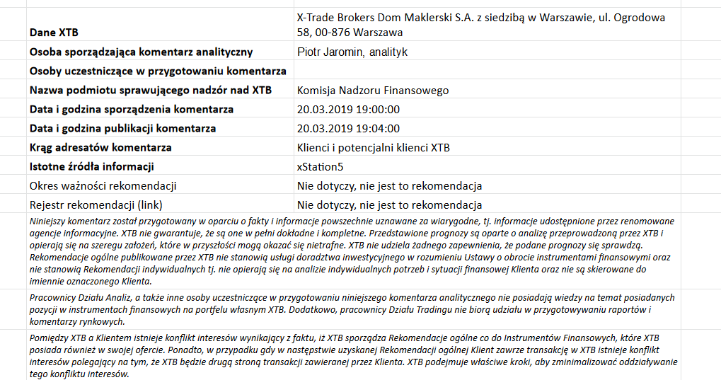 Ta publikacja handlowa jest informacyjna i edukacyjna. Nie jest rekomendacją inwestycyjną ani informacją rekomendującą lub sugerującą strategię inwestycyjną. W materiale nie sugerujemy żadnej strategii inwestycyjnej ani nie świadczymy usługi doradztwa inwestycyjnego. Materiał nie uwzględnia indywidualnej sytuacji finansowej, potrzeb i celów inwestycyjnych klienta. Nie jest też ofertą sprzedaży ani subskrypcji. Nie jest zaproszeniem do nabycia, reklamą ani promocją jakichkolwiek instrumentów finansowych. Publikację handlową przygotowaliśmy starannie i obiektywnie. Przedstawiamy stan faktyczny znany autorom w chwili tworzenia dokumentu. Nie umieszczamy w nim żadnych elementów oceniających. Informacje i badania oparte na historycznych danych lub wynikach oraz prognozy nie stanowią pewnego wskaźnika na przyszłość. Nie odpowiadamy za Twoje działania lub zaniechania, zwłaszcza za to, że zdecydujesz się nabyć lub zbyć instrumenty finansowe na podstawie informacji z tej publikacji handlowej. Nie odpowiadamy też za szkody, które mogą wynikać z bezpośredniego czy też pośredniego wykorzystania tych informacji. Inwestowanie jest ryzykowne. Inwestuj odpowiedzialnie.