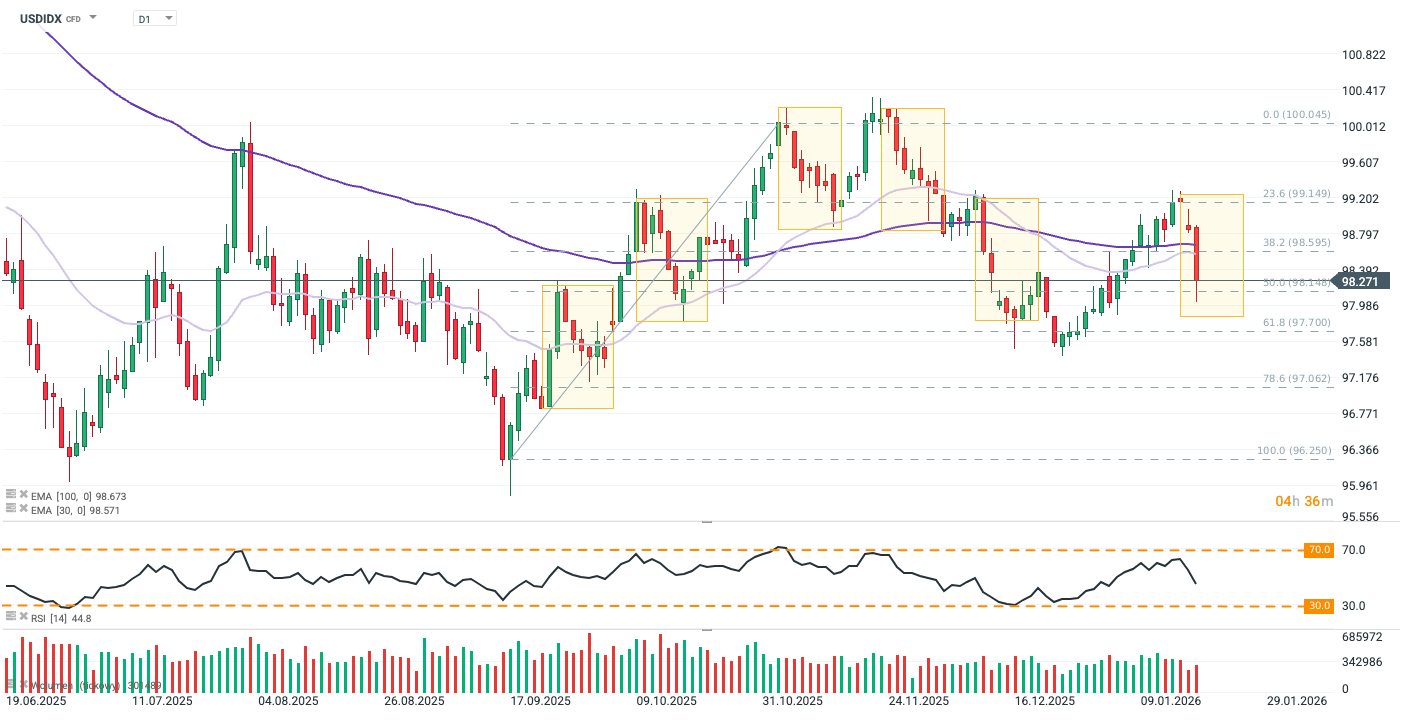 Podsumowanie dnia: Wyprzedaż amerykańskich aktywów 💸 Kapitał płynie do złota i franka (20.01.2026)