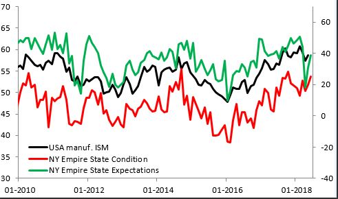 Jak to czasami bywa w piątki w dzisiejszym kalendarzu makroekonomicznym nie znajdziemy za dużo ciekawych publikacji. Opublikowany został indeks Empire, który wzrósł z 20,1 do 25 pkt podczas gdy rynek spodziewał się spadku do 19,1 pkt. Wskaźnik znajduje się co prawda nieco poniżej ostatnich szczytów, jednak i tak pozostaje blisko najwyższych poziomów dekady.