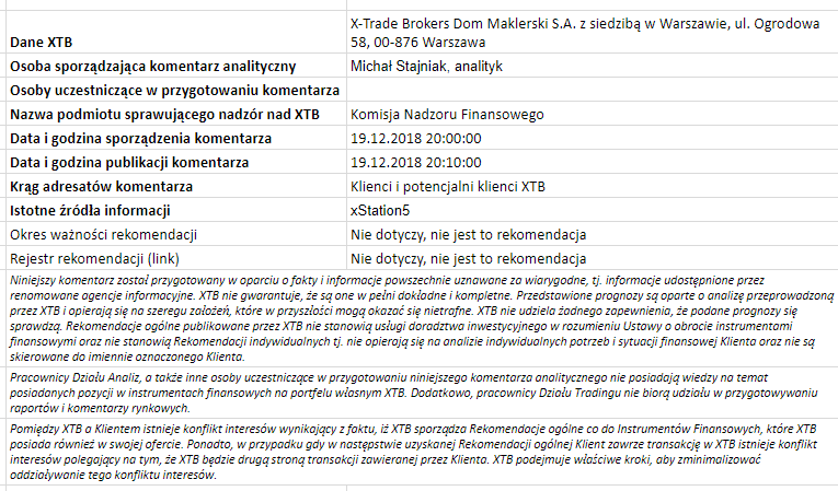 Ta publikacja handlowa jest informacyjna i edukacyjna. Nie jest rekomendacją inwestycyjną ani informacją rekomendującą lub sugerującą strategię inwestycyjną. W materiale nie sugerujemy żadnej strategii inwestycyjnej ani nie świadczymy usługi doradztwa inwestycyjnego. Materiał nie uwzględnia indywidualnej sytuacji finansowej, potrzeb i celów inwestycyjnych klienta. Nie jest też ofertą sprzedaży ani subskrypcji. Nie jest zaproszeniem do nabycia, reklamą ani promocją jakichkolwiek instrumentów finansowych. Publikację handlową przygotowaliśmy starannie i obiektywnie. Przedstawiamy stan faktyczny znany autorom w chwili tworzenia dokumentu. Nie umieszczamy w nim żadnych elementów oceniających. Informacje i badania oparte na historycznych danych lub wynikach oraz prognozy nie stanowią pewnego wskaźnika na przyszłość. Nie odpowiadamy za Twoje działania lub zaniechania, zwłaszcza za to, że zdecydujesz się nabyć lub zbyć instrumenty finansowe na podstawie informacji z tej publikacji handlowej. Nie odpowiadamy też za szkody, które mogą wynikać z bezpośredniego czy też pośredniego wykorzystania tych informacji. Inwestowanie jest ryzykowne. Inwestuj odpowiedzialnie.