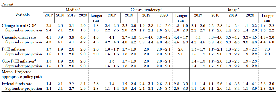Prognozy nie zmieniają się zbyt dużo. Z pewnością nie są to gołębie prognozy. Źródło: Fed