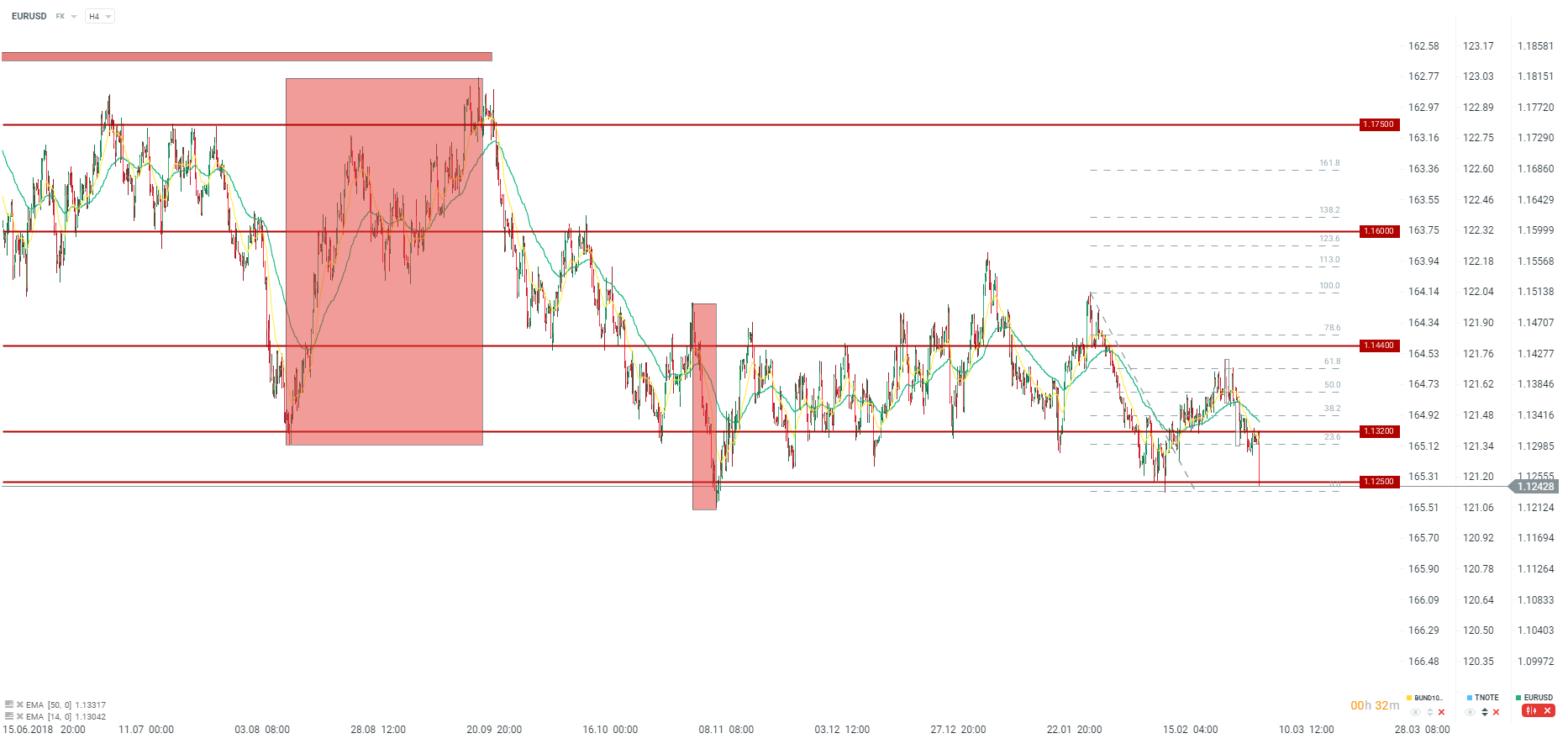 EURUSD przebija poziom 1,1250. Kolejne ważne wsparcie znajduje się przy 1,1150 i jest związane z lokalnymi dołkami z czerwca 2017 roku. Źródło: xStation5