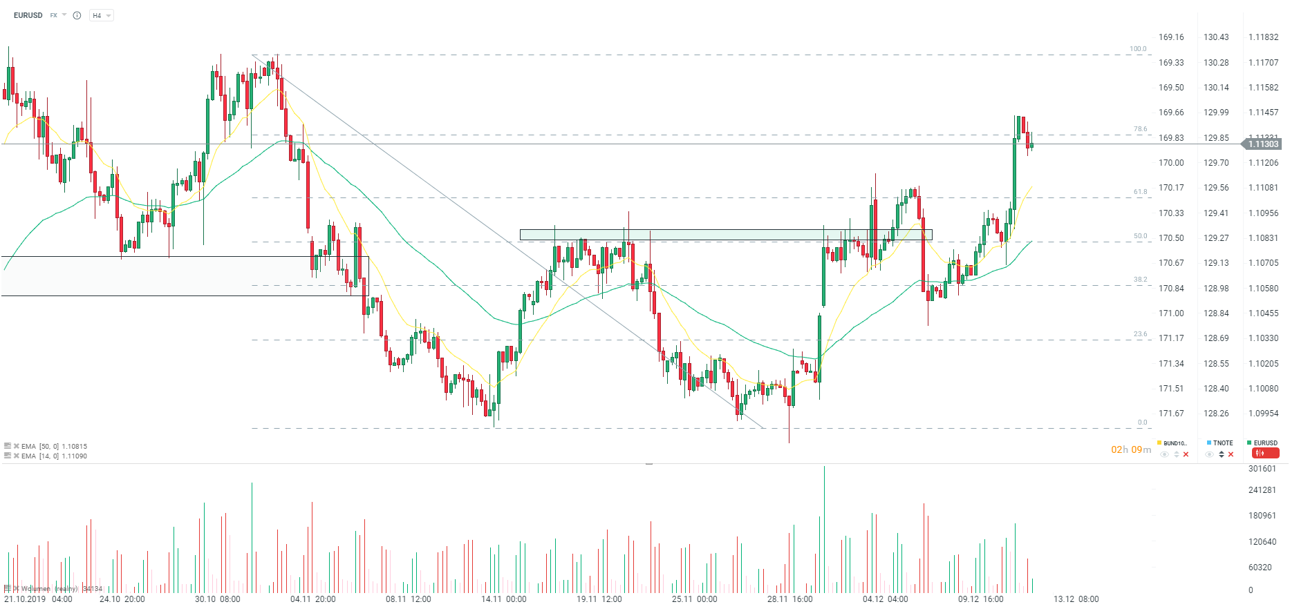 EURUSD pozostaje wyraźnie wywyższony. Po decyzji EBC nie widać większej zmienności na parze, choć odbicie na obecnej świecy H4 jest lekko ograniczane. Źródło: xStation5