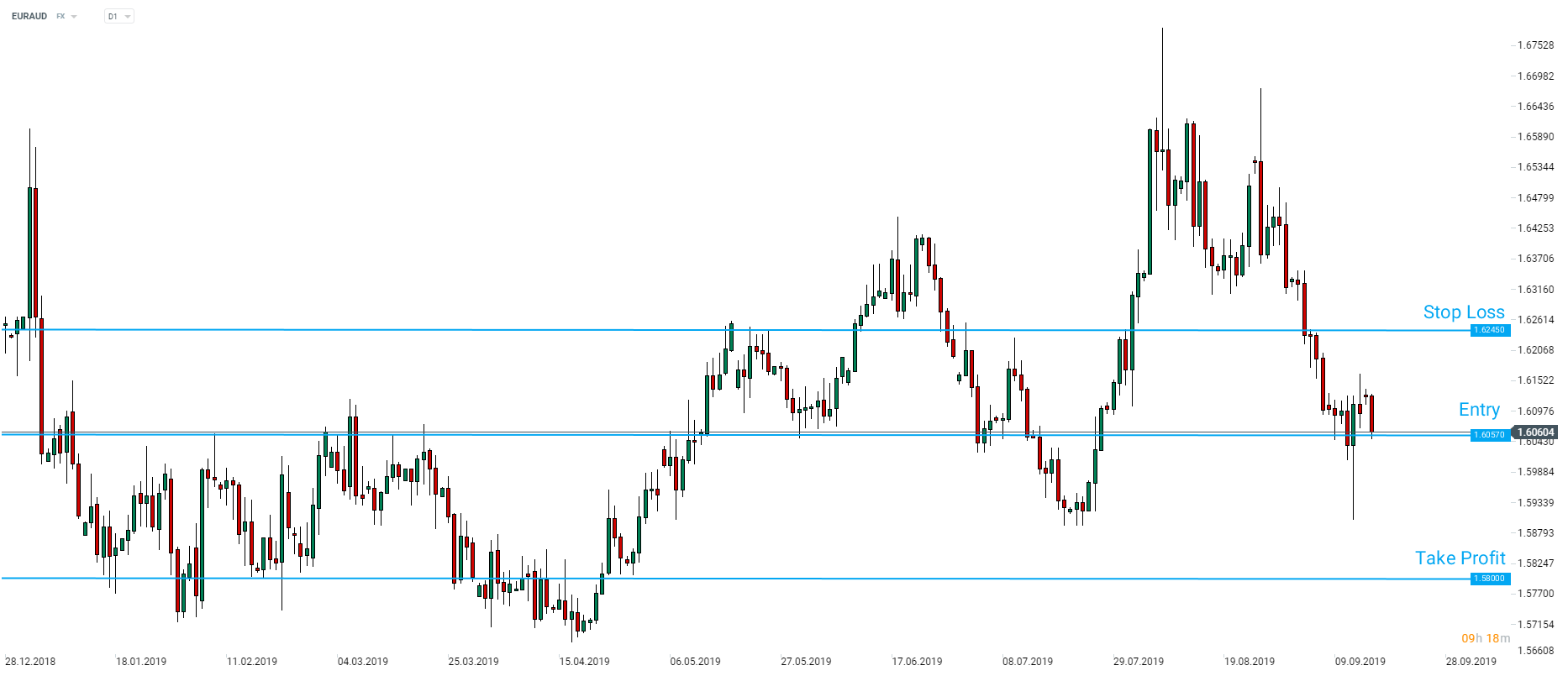 Bank rekomenduje zajęcie krótkiej pozycji na parze EURAUD z następującymi parametrami: