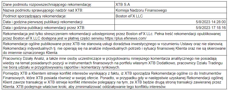 Bank zaleca zajęcie krótkiej pozycji na tej parze z następującymi poziomami: