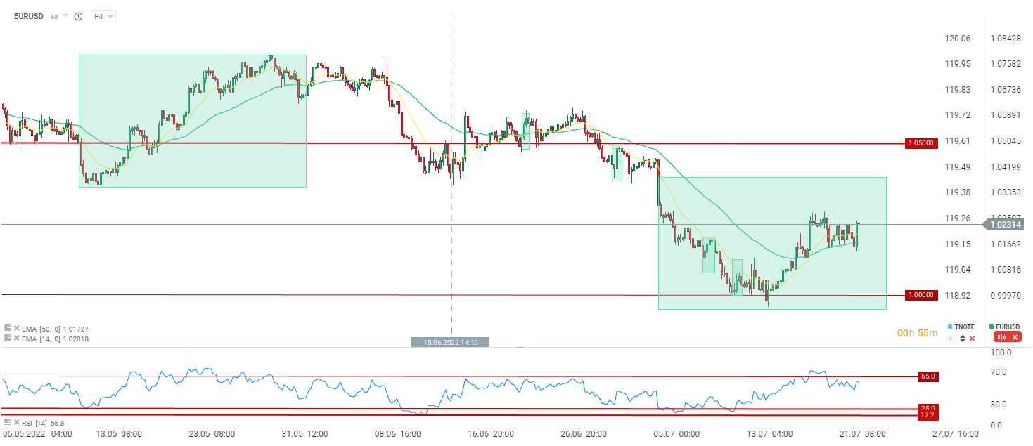 Pomimo mieszanych sygnałów, EURUSD pozostaje wysoko. Dla europejskich byków kluczowe jest utrzymanie EURUSD powyżej 1,02. Źródło: xStation5