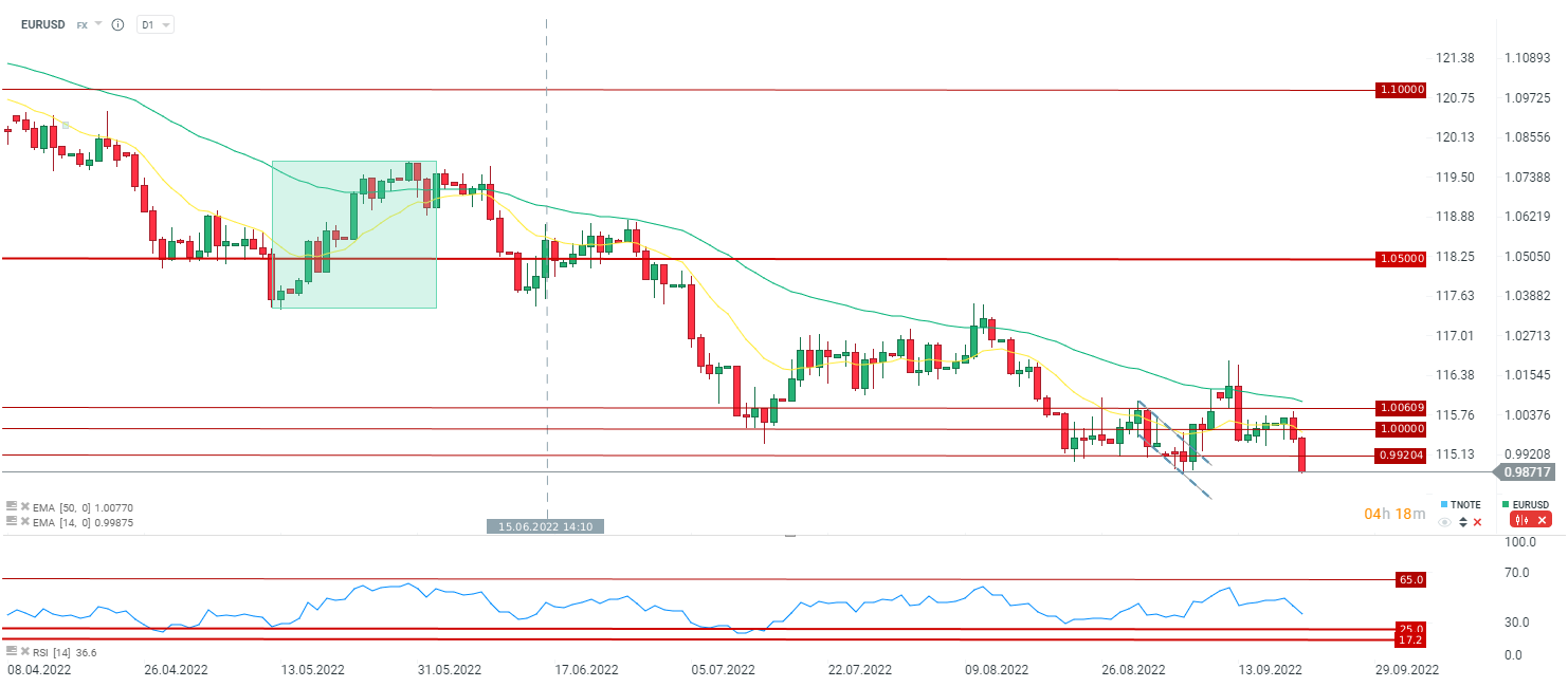 Niemal każdy oczekuje jastrzębiego Fed - jest wobec tego mała szansa na jastrzębie zaskoczenie, no chyba, że zobaczymy podwyzkę o 100 pb. Tak czy inaczej EURUSD jest notowany naprawdę nisko i jest potencjał do przełamania ostatnich lokalnych dołków.