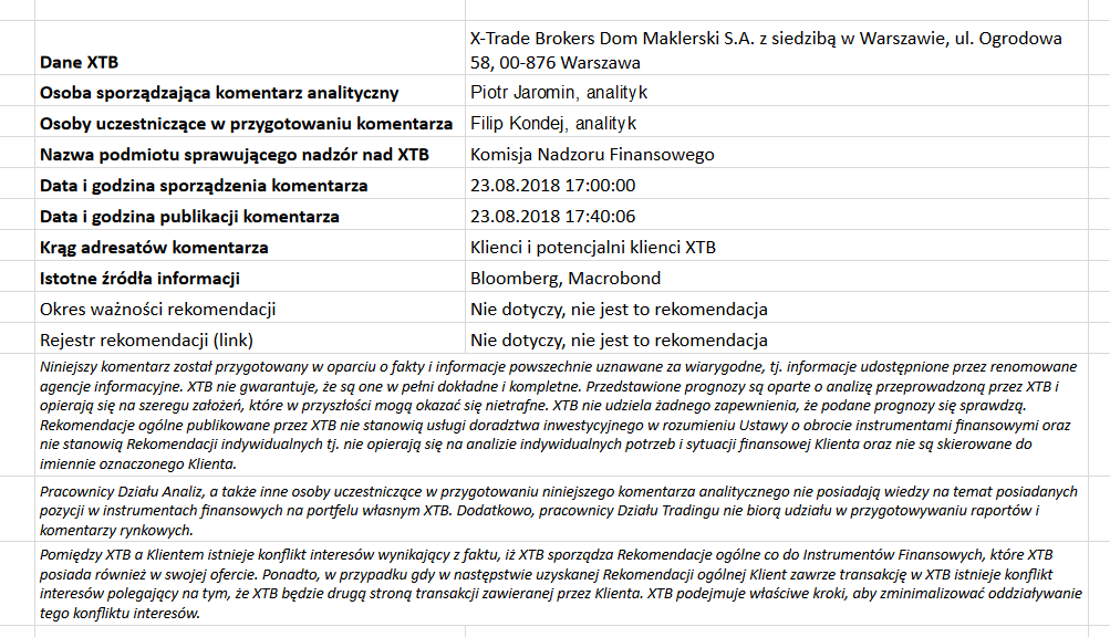 Ta publikacja handlowa jest informacyjna i edukacyjna. Nie jest rekomendacją inwestycyjną ani informacją rekomendującą lub sugerującą strategię inwestycyjną. W materiale nie sugerujemy żadnej strategii inwestycyjnej ani nie świadczymy usługi doradztwa inwestycyjnego. Materiał nie uwzględnia indywidualnej sytuacji finansowej, potrzeb i celów inwestycyjnych klienta. Nie jest też ofertą sprzedaży ani subskrypcji. Nie jest zaproszeniem do nabycia, reklamą ani promocją jakichkolwiek instrumentów finansowych. Publikację handlową przygotowaliśmy starannie i obiektywnie. Przedstawiamy stan faktyczny znany autorom w chwili tworzenia dokumentu. Nie umieszczamy w nim żadnych elementów oceniających. Informacje i badania oparte na historycznych danych lub wynikach oraz prognozy nie stanowią pewnego wskaźnika na przyszłość. Nie odpowiadamy za Twoje działania lub zaniechania, zwłaszcza za to, że zdecydujesz się nabyć lub zbyć instrumenty finansowe na podstawie informacji z tej publikacji handlowej. Nie odpowiadamy też za szkody, które mogą wynikać z bezpośredniego czy też pośredniego wykorzystania tych informacji. Inwestowanie jest ryzykowne. Inwestuj odpowiedzialnie.