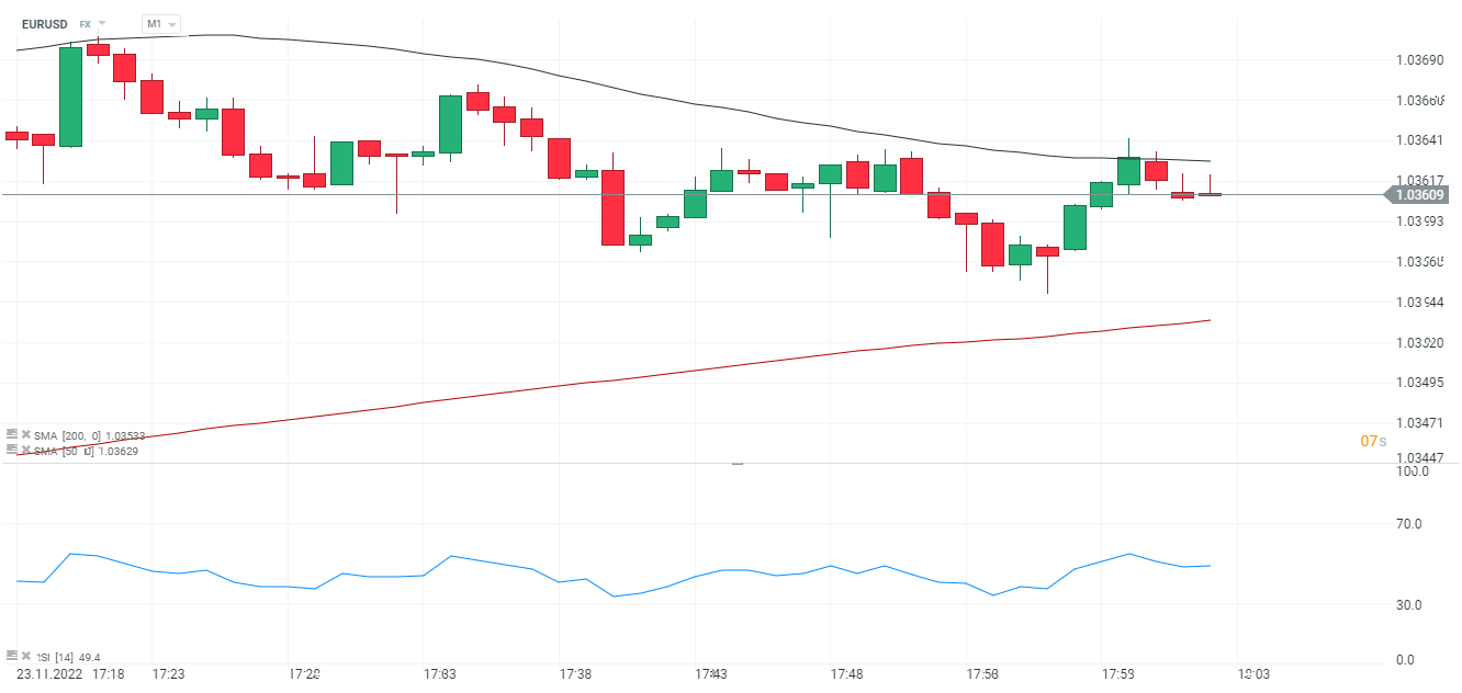 Wykres EURUSD, interwał M1. Źródło: xStation5