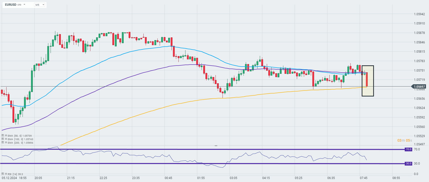 Para EURUSD nieznacznie straciła po odczycie danych o produkcji przemysłowej w Niemczech, które wypadły poniżej oczekiwań analityków (-1% w ujęciu m/m względem oczekiwanych +1% m/m). Są to kolejne, gorsze dane z Niemiec, które teoretycznie mogą zachęcić EBC do szybszych obniżek stóp procentowych.